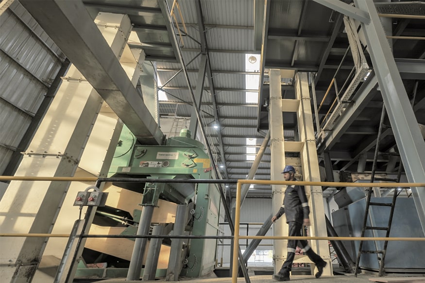 Post seed cleaning, raw material passes through Dehullers,